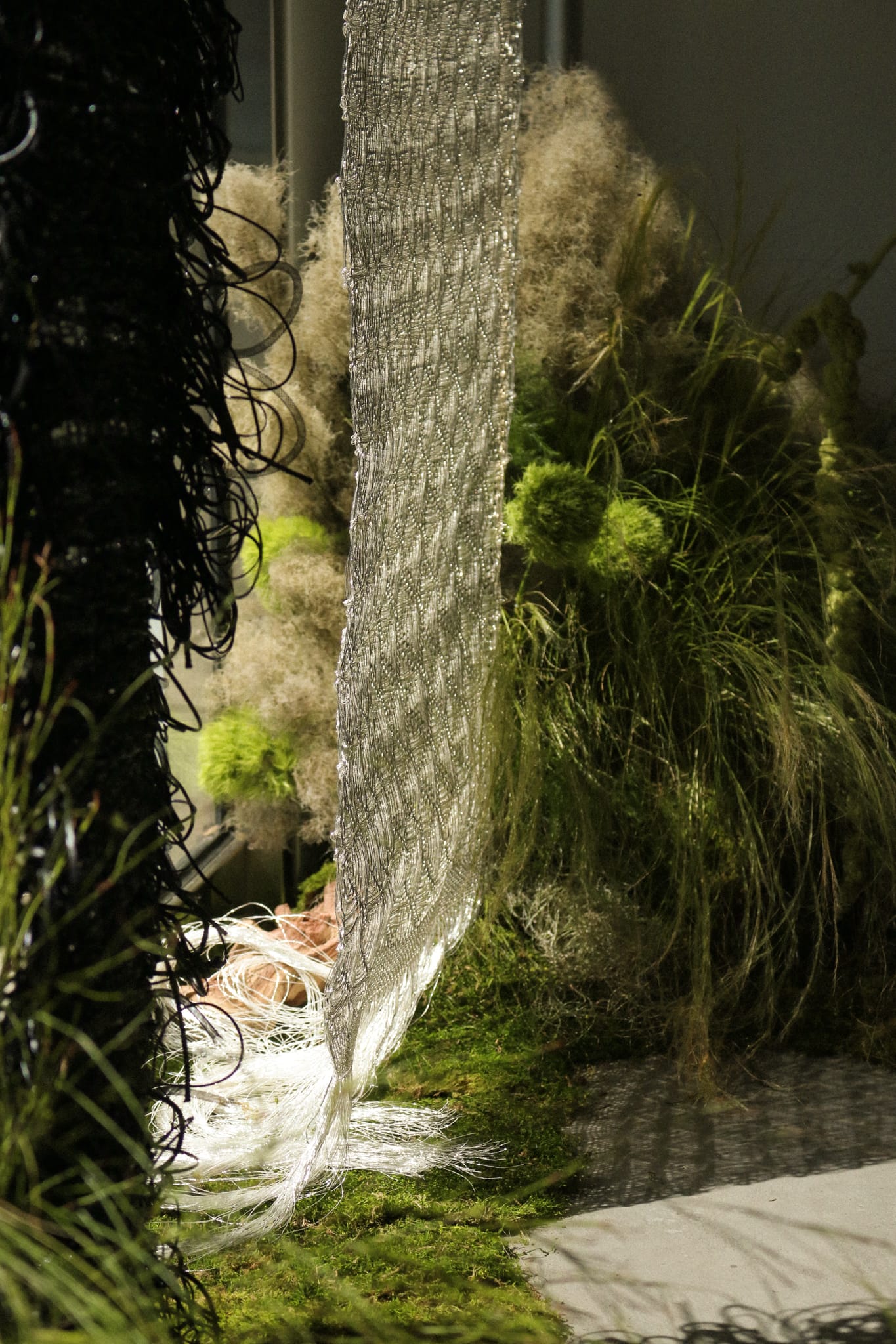 The atmosphere was in perfect balance: greens, textiles, and clothing harmonized so naturally that nothing felt overwhelming. Instead, it was relaxing, inviting you to notice textures and layers as if nature had appeared inside an urban space.