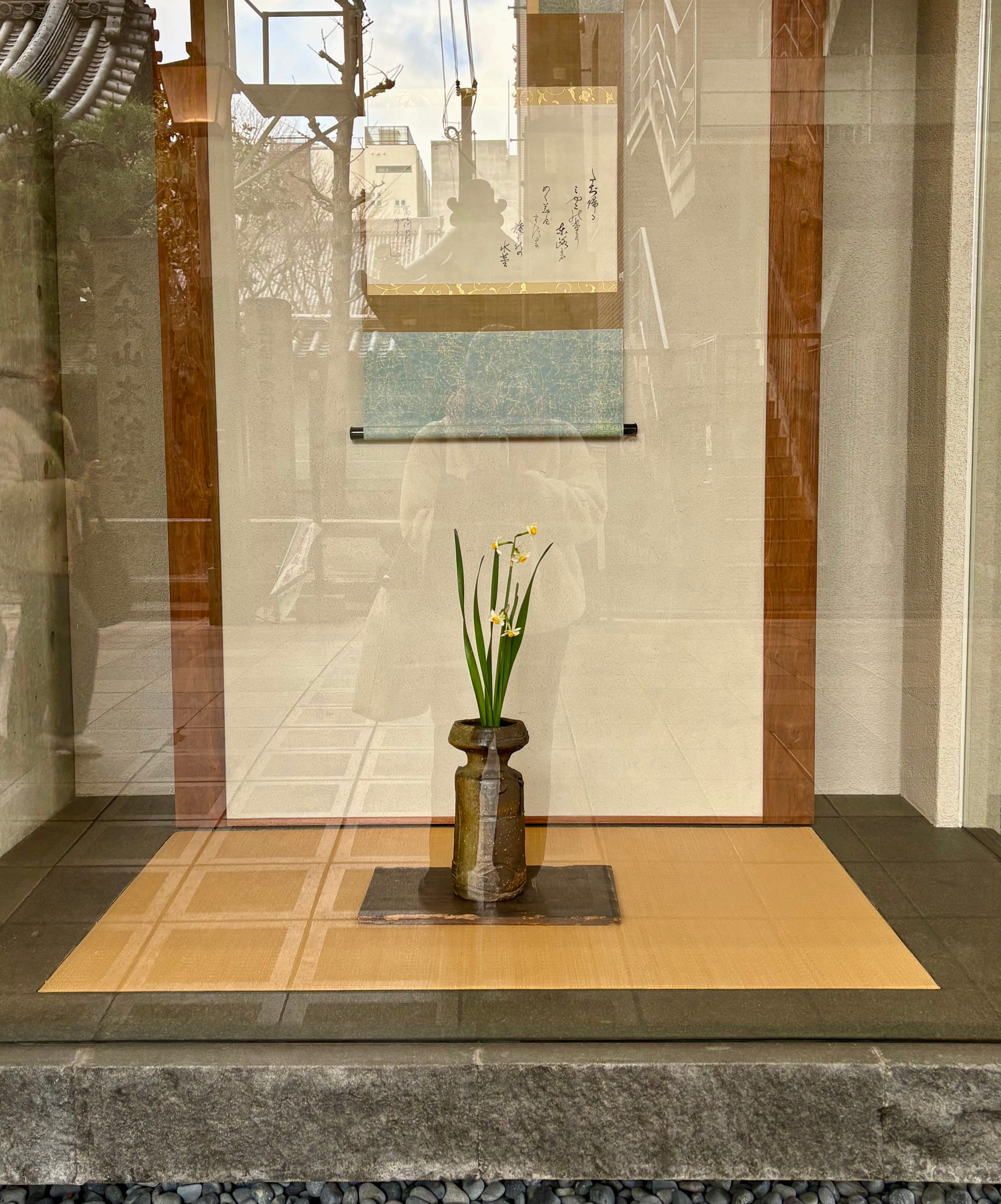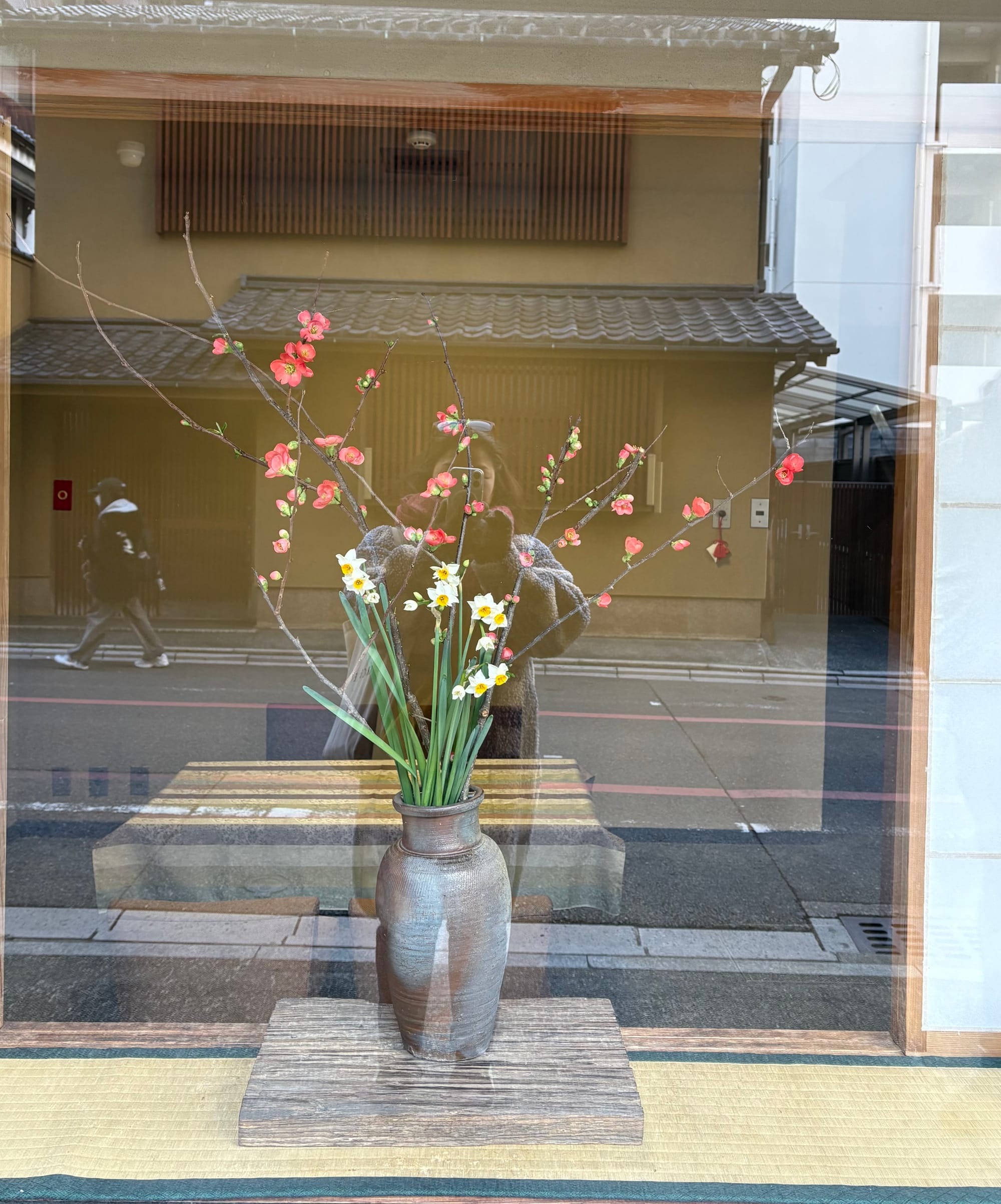 However, in Kyoto, many homes and shops still choose to display seasonal winter flowers at their storefronts. You’ll also see seasonal flower paintings featuring blooms such as narcissus, camellia, and wintersweet.